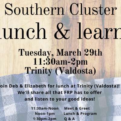 Please join Deb Tregaskis and Elizabeth Cantrell when we meet together March 29th from 11:30 am to 2 pm at Trinity Presbyterian Church – 3501 Bemiss Road, Valdosta, GA 31605-6074. We’ll share all that Flint River Presbytery has to offer and listen to your good ideas!